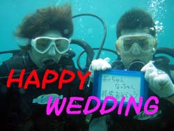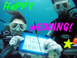 本日最後の体験ダイビングは・・・婚前旅行 よっちゃんとなおちゃんです♪まずは1本目は練習も兼ねたダイビングーー♪とってお上手に泳いでくれました。たくさんの魚にエサをあげたり クマノミと遊んだり☆2本目は青の洞窟!! 2人共 とっても上手に泳いでくれました! 洞窟まであっと言う間に泳いで 青の洞窟を楽しんで着ました♪ 洞窟からの帰りはクマノミを見たり・・・サプライズの 水中ハッピーウエディング!! 本当におめでとう!!! プレゼントにしげちゃんのバブルリングも披露してダイビングを終了♪ いつまでも仲良くお幸せに♪ また沖縄の海で遊びましょうねーー♪ |