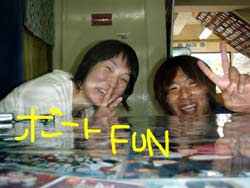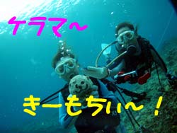 ボートFUNのコメントはおまちください。。 ワンターンです!さぁー行ってきましたよー世界の海ケラマ諸島!ここで体験ダイビングをしてきましたー!参加してくれたのはーサトウさーんです!最初は緊張していたみたいですけど・・呼吸をしてキレイな海、可愛い魚がいる所にいったらだんだん慣れていきましたね!!二本目にはカメにも会うことが出来ました!!いや〜ラッキーでしたねー!!ケラマにもたくさんポイントがあるので違う場所でも潜ってみましょーね!待ってまーす!! |