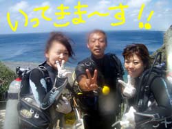 はーい!みなさ〜ん髪の毛元気ですか?今日も抜け毛が気になるさんぺーです!! 全国各地から色々な人と出会えるダイビングってとってもすばらしいですね☆ 今日はなんと北海道から来てくれた、くみこちゃんとえりこちゃんです☆2人はダイビングが初めてだったので緊張もしていたけど、海の中の魚の多さにとっても驚いていましたね!洞窟の青さにも感動してましたよ☆僕達も一緒に潜れてとっても楽しかったです!沖縄の旅行でこのダイビングが最高の思い出になってくれたら嬉しいです!! 南の島でスタッフ一同2人に会える日を楽しみにまってま〜す☆