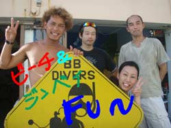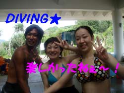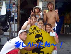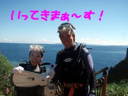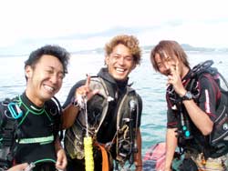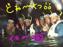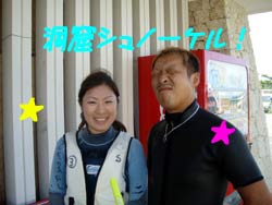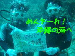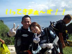 夏真っ盛りですね〜みなさーん!お祭り行きましたか?ども、最近お祭りで、浴衣の似合う女の子に憧れる、さんぺーです☆さてさて今日も元気よくダイビングに挑戦しにきてくれたのは、吉田夫妻でーす☆しんちゃんと、きくちゃんは、何日か前に体験ダイビングをしてきたばかりだけあって、2人共とっても上手に泳いでくれました〜☆蒼の洞窟は最高の思い出になりましたか?とってもキレイな光景は最高の思い出になったでしょうね☆次回また、沖縄のキレイな海で一緒にダイビングできる日を、楽しみにお待ちしてまーす☆ |