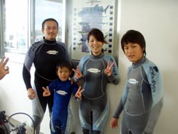 良い子のみなさ〜ん!!夏休みの宿題はしていますか〜?ども、さんぺーです☆今日は真栄田岬でステキな家族と一緒に体験ダイビングをしてきましたよ〜(0^^0)大阪から来てくれた大森さんファミリーでーす★こうへい君、りょうへい君の兄弟は海の中でもかっこいいダイバーになっていましたね★ママも、パパも、子供達に負けじとたっくさん泳いでくれました〜(0^^0)次回また沖縄で一緒にダイビングする日を楽しみにお待ちしていま〜す!! |