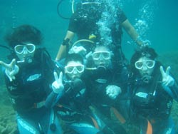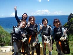 みなさーん!!いい夏を過ごしていますか〜?夏といえば花火ですね☆花火大会いきたいですね!ど〜も、さんぺーです★ 青い空と青い海の沖縄に今日、体験ダイビングをしにきてくれたのは、りょうこちゃんと、またまた同じ名前のりょうこちゃんと、のぞみちゃんと、ゆうかちゃんです。4人はとっても明るく元気いっぱいで、海に入る前の練習もとっても上手でした。タンクを担いで海に入る4人には緊張もなく、とっても上手に潜ることができましたね!沖縄の海はどうでしたか?洞窟の中からみた目の前に広がる蒼の世界に感動してましたね☆またみんなで一緒に潜りましょう!南の島で4人会える日を楽しみにしていま〜す☆
