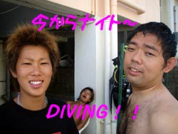 はいさーい!!今日は、千葉さんと一緒にジンベイザメ&ビーチFUN&ナイトダイビングと潜り倒してきました☆まずはジンベエザメと潜りに行ってきました☆網の中に入ると大きなジンベエが2匹優雅に泳いでいましたね!!迫力満点で写真もたくさん撮っていましたね!!他にもいろんな魚がいたのですが夢中でジンベエを追いかけていましたね(笑)そして次は砂辺で潜りました!!砂地の方に行って透明のエビなどを見て、白い砂地で癒されてきました☆そして締めはナイトダイビング!!初めてのナイトと言うことで、夜光虫で遊んだりライトを消して暗〜い海でのんびり水面を眺めたり、穴の中から出てきているエビなどを見ましたね〜!!初ナイトはいかがでしたか〜??また一緒に潜りましょうね〜!!今度は真栄田岬は蒼の洞窟にも潜りに行きましょう〜♪♪♪ |