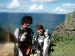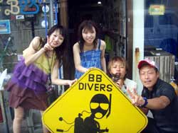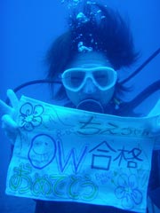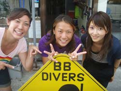 こんにちはーー!!今日はなんとっ!!B.Bより2人のダイバーの誕生でーす♪今日ダイバーになったのは船乗り川ちゃんのお姉ちゃんのはらちゃんときのっぴー☆初日から台風の影響もあり、1日目はプールでの講習、2日目・3日目はボートでの講習になってしまいましたが2人共無事OW合格でーす!!おめでとーー!!これからはちょくちょくダイビングをして感覚を忘れないよーにしてくださぁい^−^次回は台風ではない事を願って・・・また一緒に潜りましょー☆楽しみに待ってまーす! |