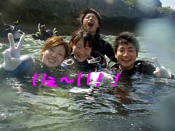 海物語のマリンちゃんが本当に海にいたら・・・フィーバーですね☆ど〜も、さんぺーです!! 今日も夏全開の沖縄に体験ダイビングに来てくれたのは、のりちゃん、みきちゃん、ゆきちゃんの仲良し3人組で〜す☆みんなとっても上手に呼吸の練習や、耳抜きができたので洞窟めざして海に入ると3人はとっても上手に泳いでましたよ!洞窟の中から見た青の光はどうでしたか?3人とも癒されたことでまた帰っても頑張ってくださいね☆B型のゆきちゃん!!!みんなと一緒に潜れて本当に良かったですね☆ 南の島でまた次回一緒にダイビングできる日を楽しみに待ってるね!! |