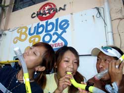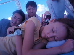 はーい!!今日は〜ジンベイと一緒に潜ってきました〜!メンバーは仲良し姉弟のトモミちゃん!アキヤくんでーす!船で走る事〜五分!!さぁーやってきましたジンベイポイント!!エントリーしてスグにジンベイ君がお出迎え・・・!!いや〜大きかったねー!ッストロボの忘れたカメラで(笑)バシバシと撮っていました!!どんな写真が出来上がるのか楽しみだねー!!もしできあがったら写真送ってねー!! |