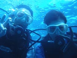 みなさーん沖縄に旅行に来るなら体験ダイビングおすすめですよ〜☆ど〜も。さんぺーです!!今日は、気ままにぶらりと1人旅をしているけいじくんと体験ダイビングを2本潜ってきました☆最初は自信がないと言っていたけいじくんでしたが、海に入るととっても上手に泳いでいました☆いろんな魚をみたり、洞窟の中で青い世界を楽しんだり、充実したダイビングができました!!沖縄旅行の最高の思い出になりましたね☆次回また沖縄に来た時は、また一緒にダイビングしましょうね!!お待ちしていまーす☆ |