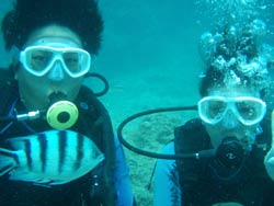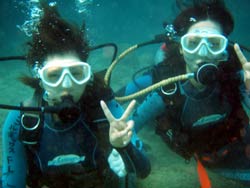 はーい!今日はビーチの体験ダイビング!参加してくれたのは〜チサトさん!キミコさーんでーす!!キミコさーんはライセンスを持っていたのでちょっと気分はリラックスでしたかね!チサトさんは初めてだったのでちょっとドキドキ??でしたかね!!でもでも海の中に入ってしまえば〜楽勝でしたね!2人で泳ぎながら写真をバシバシ!!ニモもかわいかったねー!!お次は2人でライセンスコースに挑戦してみて下さいね!! |