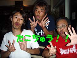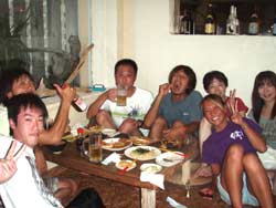 はいさーい★ひろあきです!今日は久し振りにみんなで水納島へ行ってきました(笑)今日のメンバーは昨日から引き続きのながP・三角さん・久し振りに遊びに来てくれた藤本さん・めぐちゃん・石井さんの5名です。張り切って出発していったんですが今日は日曜日で車はガラガラ。。30分も早く港に到着してしまいました。今日は水納島のイエローフィッシュロックとポートサイドで潜ってきました〜!!!!透明度は相変わらずバツグンで砂地もキラキラ綺麗でしたよ^−^砂地にある根にはキンギョハナダイやスカシテンジクダイ、グルクンの群れがついていてみんな自由に根の周りをグルグル回って観察していました。そしてエキジットの前に振り返って人数を数えていたら3・4・5・・・6??1人増えてると思ったら超巨大なカメがゆっくり接近!しかもコバンサメが2匹もゲット★そして二本目は真っ赤のオオモンカエルアンコウや砂地に隠れているヤッコエイなんかも見れましたよ〜★帰りの車はみんな爆睡・・・。俺も眠かったっす(笑)でも砂辺に戻ってきて我等がホームグランド砂辺NO1で3ダイブ目!!最近BBの中ではやっているピグミーシードラゴンをじっくり観察してきました。今日もお腹いっぱいに潜りましたね。夜はビールで乾杯です!^−^ |