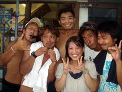 はいさーい!ひろあきです!今日は賑やかなメンバーがお店に遊びに来てくれました☆マサシくん・ヒロシゲくん・カズタカくん・淳くん・タカノリくん・こうへいくん・ゆうきくん・の7名です!みんな写真の通り筋肉マッチョ(笑)なんせ消防士のメンバーです☆今回は特上Cコースダイビングでがっつり潜ってきました。泳ぎも上手であっという間に水中でスイスイ泳いでいましたね〜^−^ナマコの一発芸もなかなかいけてたよ(笑)今度は是非ライセンス!取得してください。また遊びに来てね〜☆ |