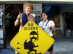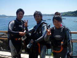 こんにちはーー!!今日はなんとっ!!B.Bより新たに3人のダイバーの誕生です☆今日ダイバーになったのは大阪からきてくれた仲良しファミリー勝村さん一家のパパ・ママ・のんちゃんでーす♪おめでとーーー^−^そして今日はOWとって1年ぶりに遊びにきてくれたのんちゃんも一緒に潜ってきましたーー!!久々&足負傷中ということでゆっくり思い出しながら、勝村ファミリーもOWラストということでのんびりダイビングを楽しんじゃいました★いや〜それにしても勝村ファミリーは初日からダイビングのセンスありありでかなり上手でビックリでしたよー!!3人共学科も実技も見事合格おめでとうございます☆また三人で遊びに来てくださーい!!のんちゃんも足よくなったらまた遊びに来てねーー^−^ |