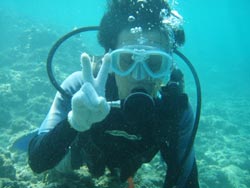 はーい!!今日は体験ダイビング〜!参加してくれたのは〜三上さん親子でーす!!なんとお父さんは100本ダイバー!でもでも五年ぶりのダイビング!!娘さんのリナさんは初挑戦!!でも〜全然余裕のダイビングでしたね!!リナさんは1人で泳ぐことも出来ました!!ニモにも会えてよかったね!!俺の泡のリングもなかなかでしょー!次はライセンスにも挑戦してみてはいかがですかー??いつでもまってまーす!! |