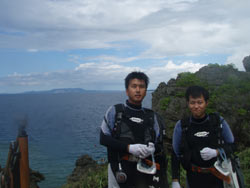 九州から遊びに来てくれた、千原ジュニアに似てるジュニアと小野氏の2人です!今回は洞窟ダイビングに挑戦です☆水中でも撮れるカメラを持参しての参加でカラフルな体で水中をスイスイ泳ぐ魚をバシバシ撮っているジュニア!泳ぎも上手でほとんど自分で泳いでた2人^−^神秘的な洞窟はどうだった〜??また沖縄に来た時は遊びに来てね〜!!!! |