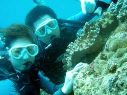 はーい!!ワンタンでーす!!今日はビーチで体験ダイビング!!参加してくれたのは〜カズマさん!アズサさんでーす!最初は緊張するかな??と思ったんですけど全然大丈夫だったみたい・・。2人でスイスイ泳ぐことができて〜魚にエサあげたり、ニモにもお触りしましたね(笑)どうですかー?独特の感触ですよねー!柔らかいサンゴもブニュブニュ・・・。海の中は柔らかい(笑)最高ですね!!また潜りましょうね!! |