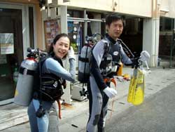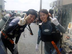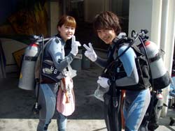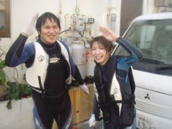 今日の体験ダイビングは東大生ですよ!!東大生!!!学生証が眩しすぎて目がくらみましたよ・・・みどりちゃんとあっきーのお2人★初めてのダイビングだったけど めっちゃ上手に遊んでくれました♪ たくさんの魚にえさをあげて遊んだり、カクレクマノミの「ニモ」と遊んだり・・・しげちゃんの一発芸も 覚えてるかな・・・?(笑) また2人で沖縄に遊びにきたら是非ダイビングしようね♪次は青の洞窟にいこうねーーーー!! |