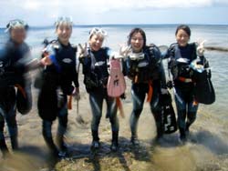 はいさ〜い!ひろあきです!!今日も新しいダイバーが誕生しました!今年も遊びに来てくれたダイビングチームFLATの新一年生☆のさく&ひるま&たか&けい&しんやの5名と沖縄長期滞在中のゆみちゃんの6名です!講習初日は器材のセッティングから練習して初めての水中呼吸、浮力調節・・・などなど!最初は水中での動きになれずにバタバタしていたけど最後は自分でBCを調節して呼吸で浮力調節をして自由自在に水中を泳ぐみんな!!もう立派なダイバーだよ〜☆★オープンウオーターダイバー合格です!おめでと〜〜〜パフパフパフパフ★☆★☆★FLATのメンバーは明日初めて先輩達と潜るね!かっこいい所見せてあげてね!ゆみちゃんはまた沖縄に来た時は是非是非遊びに来てください!!みんなホントにホントにおつかれさまでしたぁ〜♪ |