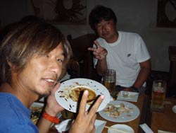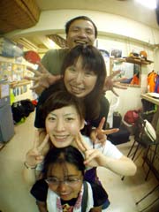 はいさーい☆今日はFLATのみんなとひとしくんと一緒にケラマへボートダイビングでーす☆が・・・海況があまりよくなくて、北谷の近くのケラマに行ってきましたよ〜☆さすがにケラマだけあって透明度もよくクマノミもたくさんいましたね☆カクレクマノミを見たり、クマノミ、ハナビラクマノミ、ハマクマノミ、セジロクマノミなどお祭りのような賑わいでした〜☆そして船の上でもお祭り騒ぎ!!!みんなで一緒に海へダイブ☆しかしうまく撮れなかったのでもう1回!!ヘロヘロになりながらみんなで泳いで船に戻ったり、サークルはやっぱり楽しそうでいいですな〜☆ひとしパパも負けずにダイブしてましたね☆また沖縄で会いましょう☆明日がラスト!!最終日もたっくさん遊んで最高の夏にしてね〜☆ |