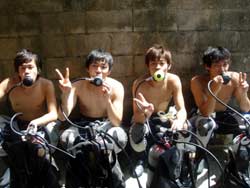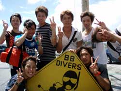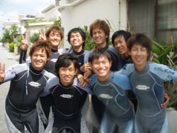 午後から遊びに来てくれたエンジョイ体験ダイビングのシュウヘイくん&トモヒロくん&シュンくん&タカヨシくん&ケンくん&タクヤくん&シンジくん&ユウスケくんの元気な8人組☆ちょっと耳抜きに手こずりましたがそこは男!!気合でみんな潜ってたね(笑)水中ではみんなで記念撮影をしてフワフワのソフトコーラルを見たり楽しんできましたよ〜☆また遊びにおいでね〜^−^ |