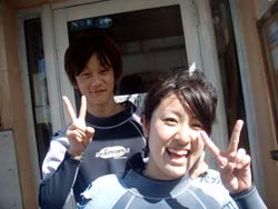 砂辺の海で今日は仲良し2人組みのあずさちゃん、いつみちゃんと体験ダイビングをしてきました!!ちょっとだけ緊張していた2人でしたが、少しずつ緊張もとけて、海の中ではとっても元気よく遊んできました!!やわらかいサンゴを触って遊んだり、ニモと写真をとったり、キラキラ輝く水面を見たりと水中の世界を楽しんでくれました☆もっとたくさんダイビングしたくなったのでは?また一緒に沖縄の海でダイビングしようね!楽しみにしてるよ☆南の島でお待ちしてま〜す☆ |