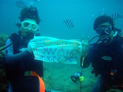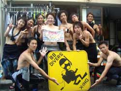 今年も 来てくれてありがとう〜〜フラットのメンバーゆき・かなね・あかね・ゆり・たくや・あゆむ・あやか・きょうこ・ともき・しんや・けい・ゆうすけ・まるちゃん・どんちゃん・ひるま・たかし・ゆうま・りょうすけ・佳功・はるき・えみこ・ちづる・さきです。一年生が沢山増えて またまた 楽しいメンバーが増えてました。毎年思うけど みんな 本当に 楽しくて、おちゃめで、かわいくて、意外といいやつ!そんなフラットのメンバーの今回の合宿は 笑いあり涙アリ、で 感動 感動でした。まぁ 毎年 感動してるんだけど・・・・笑 でも 今年は またまたパワーアップしての 感動だったね〜〜 水中では ガイドというより みんなの楽しい姿をみているだけど なんか 嬉しかった陸にあがっても みんなと 話が出来たのが とっても 嬉しかった。最後には 恒例のバーベキュー!おいしかったね。なんか 若いって いいな〜〜!なんか青春っていいな〜〜!そして スイカ割り!あんなに 小さなスイカはじめて見たけど・・・楽しかったね。みんなそれぞれの思いでそれぞれに思って誰かの為に 思いやりの心! ずっと ずっと忘れないで欲しいです。きっと これから大変な事もあるだろうけど いつか こんな事して バカして 感動して 思いやりがあった事 思い出して 乗り越えて!人生のオーバーハングを乗り越えろ!!また 会おうな!!沖縄の青い海で待ってるよ〜〜! |