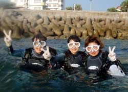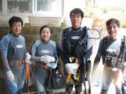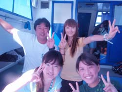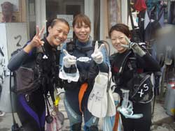 まいどひろあきです!朝から遊びに来てくれたのは岡山から遊びに来てくれたさわちゃん&たむたむ&さちよちゃんの3名!初めてのダイビングに最初はどきどきな様子だったけど、ちょっと波があった海でも全然余裕に潜れました^−^みんな気合入ってたもんね★魚に餌付けしたりかわいいニモを見たりソフトコーラルをさわったりダイビング満喫〜でしたね。今度は是非ライセンス取得してください★☆★☆待ってま〜す!! |