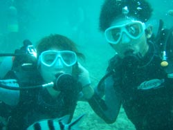 こんにちはーーー!!今日は砂辺で体験ダイビングでーす^−^遊びに来てくれたのはゆかちゃん&たねちゃん★2人ともダイビングは初めてという事で少し緊張気味でしたが2人仲良く潜ってきましたーー!!ニモを見に行ったり魚にエサをあげたり、ラストには水中でハッピーバースディのお祝いもしてきましたー♪2人共次回はライセンスに挑戦してみて下さいねー!!楽しみに待ってまーす!! |