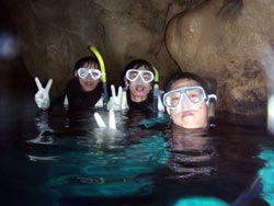 11:00体験ダイビングに参加してくれたのは 顔に似合わず龍司ととってもお茶目なゆいちゃんです。Bコースの申し込みでしたが せっかくなので Eコースの洞窟体験ダイビングに変更!うんうん!どうだった?潜水時間も長く とってもきれいだったでしょ!!?洞窟からのアノ青い海は とってもキレイだったね!二人とも すぐに水中でのコツを覚えてスイスイと泳ぎはじめたのでビックリです。特に龍司君は 後ろで持っていても、ぐいぐいと 自分で泳いでいましたね^0^!ゆいちゃんも洞窟からの帰りは一人ですいすいと泳ぎ 呼吸の使い方もとっても上手でしたよ。まだまだ見せたい海があるので また 沖縄に遊びに来て下さいね。待ってますよ! |