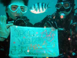 今日は可愛い可愛い女の子(12歳)がなんとぉぉぉ!!ダイバーななっちゃいましたぁ(0^^0) 約2年前に体験ダイバーとして遊びに来てくれたあゆみちゃん☆今回は講習を受けに遊びに来てくれました♪1日目はと〜っても冷え込んでいたので学科のみ★バッチリ合格して2日目から海洋実習(^^) 最初はうまく行かない部分もたくさんあったけど持ち前の冷静さで無事に終了☆3日目の今日は手慣れた感じで水中世界へ(^0^) たくさんのスキルを上手にこなして泳ぎながらとってもいい笑顔を見せてくれました♪最後にフリーフローをやって・・・見事!!OW合格〜☆★☆おめでとう(0^^0) これからもたくさん色んな海を見て楽しんでね♪明日からのAOWも頑張ってね(^^) |
