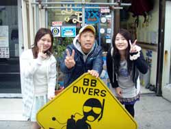 は〜い!!ど〜も〜!!ワンタンで〜す!!今日はFUNダイビングにいってきました〜!!メンバーは新婚ホヤホヤのいずみちゃ・・・・いや・・・・大島きみこさんですね!とひろみさんで〜す!!ちょっと砂辺はパシャパシャしていたのでベタベタの真栄田岬に移動してダイビングをしてきました〜!!水温はちょっと低かったですが〜ゾウゲイロウミウシ、シライトウミウシ、カエルアンコウ、ミゾレウミウシ、などを見ながらあと、ヒトデ様も久し振りにでてきました〜!!泳ぎながら2人の写真をバシャバシャとって〜ムービーもたっぷりとってきました〜!!そして最後はBBダイバーズから二人へのサプライズハンカチ!!ひろみさんもいずみちゃんもよろこんでもらってよかった!!これからも末長くお幸せに・・・。 |