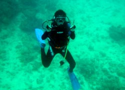 はーい!!ワンタンで〜す!!今日はケラマにファンダイビングしてきました〜!!メンバーはサイッキーですよ〜^−^ポイントは知志・ウチャカシ・ツインロック!全て地形ポイントで攻めてきましたよ〜!!青い光に包まれながら泡の数だけの想いをひめてのダイビングは知志!!おもしろい地形に何もない外洋にでてロマンを感じたウチャカシ!!そして流れを体全体で感じ夢を追い求めた黒島北ツインロック!!いや〜ホントさいこーに楽しかった〜!!泳ぎすぎて3本目はさすがに疲れちゃいましたけどね((笑))今日でサイッキーは最終日だけど、また向こうで疲れたら沖縄にきてね〜!! |
