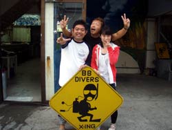まいど〜!!さんペーです!!今日はBB初&沖縄初のまりちゃんと地元ダイバーシーサーと3人でファンダイビングをしてきました〜!!^−^ |