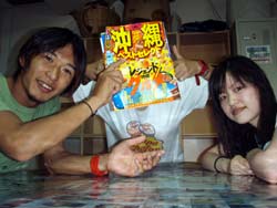 まいどっ!!さんぺーです☆今日は崎本部にあるゴリラチョップにドキドキ!ワクワク!体験ダイビング〜!に行ってきました☆東京からきてくれたヒロ君とアスカちゃんと一緒に2本潜ってきました☆今日の海は白い砂地がきれいで太陽の光も入って水面もキラキラ輝いていました〜☆クマノミを見たりイソギンチャクを触ってみたり、たくさん泳いでみたり、かわいいお魚にエサをあげたり初めてのダイビングを楽しんでくれました☆天気も良くて海からあがってきてもぽかぽか温かったですね!!僕も一緒に潜って楽しかったです☆今度はソフトコーラルがたくさん群生していてとっても綺麗なお店の前の砂辺の海で一緒にダイビングしよう☆☆南の島で2人に会える日を楽しみに待ってるよ〜〜☆今日は一日ありがとうございました☆以上さんぺーでした!! |