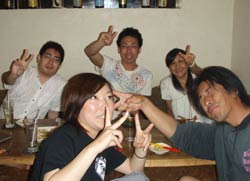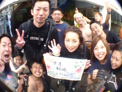 まいど〜ひろあきです!!今日は見事に晴天!!GW真っ只中です^−^そんな中遊びに来てくれたには大学のサークル時代の仲間6人組。今は社会人になって別々の生活になっているらしいけどまたこうして集まれるのってすごいっすね!!今日はみなさんとケラマへ行ってきました☆メンバーはリーダー・アッキーナ・かっなーえ・ジビキ・よしおくん・サブリーダー☆のみなさんです。まずはスノーケルで肩慣らし。綺麗な水中を見てみんなおおはしゃぎ☆サブリーダーだけはライセンスを持っているので、「ウチャカシ」でファンダイブを楽しんできました。まるで遺跡みたいな地形はすごかったね〜^−^そしていよいよみんなの体験ダイビング!!初呼吸にドキドキしながらもゆっくりゆっくりロープを持ちつつ潜行開始!!透明度最高の海の中でクマノミを見たりナマコをさわったり・・・みんなで記念撮影をしたりとしっかりと思い出づくりできました!そしてフワフワ泳いでいると遠くに大きな影が・・・・。カメ発見!!!!!!そ〜っと近づいても全然逃げていかないので、かなり近くで見ることができました☆最後は船の下でも遭遇できてかなりラッキーでした^−^またいつかみんなで遊びに来てくださいね。待っています☆ |