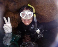 はいさーい!!今日の午後から、蒼の洞窟体験ダイビングに行ってきましたよ〜☆遊びに来てくれたのは、大峰さんでーす☆初めてという事でしたが、とっても上手でガンガン泳いでいましたね☆魚に囲まれながら写真を撮ったり、蒼の洞窟も振り返ってみると青の光が蒼く輝いていてとってもきれいでしたね☆また沖縄に遊びに来て下さいね〜!!南の島で待ってますよ〜♪♪♪ |