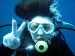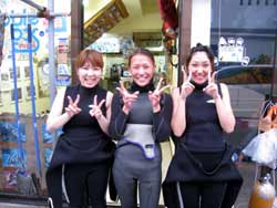 はーいどーもーワンタンでーす!!今日は真栄田岬で体験ダイビングをしてきました〜!!メンバーはヒロさーんとマイさーんでーす!二回潜るコースで砂辺も潜りたかったんですが・・・真栄田岬が湖みたいにしずかだったので〜二回とも真栄田岬で潜って来ました〜!一回目は呼吸、耳抜きの練習でお!バッチリで海の中へ入って行くことが出来ました!まっすぐ自分で泳いで見たり〜、寝返りの技をやってみたり((笑))全ては洞窟の為に!さぁーっというわけでーちょっと休憩をして二本目へ・・・ゆっくーり泳いで〜暗い洞窟の中へ・・ちょっとドキドキしてたみたいですね((笑))でもきれいだったでしょー!いい所にスノーケルの人もいたし、魚も相変わらず貪欲で群れていましたね!!今度は家族できてくださいね〜!! |