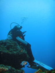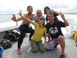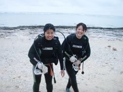 は〜い!!ど〜もワンタンで〜す!!今日は砂辺でビーチファンダイブをしてきました〜☆一緒に潜ってくれたのは〜5年ぶりのともさんと〜お母さんで〜す!!お久しぶりですね〜!!リフレッシュもリフレッシュなので(笑)。最初は呼吸の説明から!お二人とも表情がすごく真剣でしたね!!でもふっと気がつくと〜お母さんのこうちゃんがきになる様子(笑)ちょっと練習した後は〜足のつく海へ!!途中までこうちゃんも一緒に(笑)大きくなったら一緒に潜ろうね〜!さ!いざ出発の時は緊張してらっしゃいましたが、、魚を見たりナマコを触ってみたりニモ・クマノミ・卵などなどを見ていくうちに段々慣れてきていきましたね〜!!たまごなんかはよ〜く見ると目がついていたりソフトコーラルも触り心地が違うし海ってやっぱりおもしろいですね!今回は時間があまりありませんでしたが、次回は一緒にご飯でも食べながらうみの話でもしまよ〜ね!!あ!!こうちゃんその時はパズルももってきてね!!まってま〜す!! |