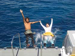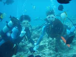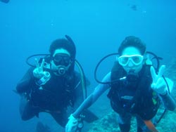 こんにちはーー!!なすびです!!!ゆうこさんのお友達のみかさん&えいじろうさんとゆうこさんも一緒に体験ダイビングしに行って来ましたーー!!えいじろうさんは初ダイビングという事でしたがとても上手でしたね^−^魚にエサをあげたり、みかさんの大好きなナマコを触ったりして遊んできましたーー♪ニモややわらかいサンゴにも触っちゃいましたねーー★イルカもいたし笑。2人ともとても上手でしたよ〜!!楽しかったですねーー!!また2人で遊びに来て下さいねーー!!待ってまーーす!!!! |