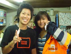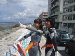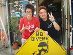 はいさぁーい☆今日は藤山さんが娘さんのなおちゃんを初ダイビングに連れて来てくれました!!藤山さんもBBで潜った昨年の9月以来と言う事で自身初の真栄田岬でのダイビング^▽^♪海の中はとってもキレイでなおちゃんも感動していましたね^^♪お魚いっぱいに囲まれるくらいにエサをあげたりピンクのかわいいクマノミを見たりお父さんと一緒に写真を沢山とったり空を飛ぶように泳いだりと本当に楽しかったネ!!次はライセンスとりにきてみるといいよぉ〜♪もっともっとダイビングが楽しくなるはず!!来年また遊びにきてねぇ〜☆今日はありがとうごじあましたぁ〜♪ |