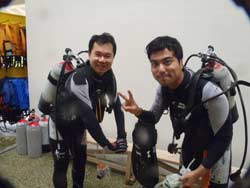 はいさい!今回遊びに来てくれたのは 加藤のたっちゃんです。メニューはディープスペシャリティーです。-30m異常の水深で 作業をいろいろとしてきました。 カメラ大好きたっちゃんは 作業よりもエビやらカニやらが 気になるようなので水中ツアー時間を少し長めにとり 魚紹介を少し多めにしましたが、いい写真撮れたかな?アドバンスの時にやった ディープ講習の復習から今回初めての体験や コンパスなんかは少しつづ思い出していたようですが、これからは 自分でもしっかり 残圧確認などなどでも ディープSP者は 深さの怖さを知るからこそ 安全なダイビングを心がける事が出来るダイバーです。リスクをしっかりと覚え 楽しい安全ダイビングをこれからも 楽しんでね!DDS合格おめでとう〜〜明日のファンダイブも楽しんで下さい。また 沖縄の海で 待ってるぞ!カメラ夢中になりすぎて 置いてかれないように・・・・^^; |