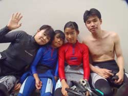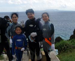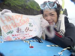こんにちはーーー!!なすびです!今日はマエダ岬で体験ダイビングをしてきましたーー^−^今日遊びに来てくれたのは川上さんファミリー!!お父さんとお母さんはB.Bでライセンスをとってから久々に遊びに来てくれましたー!!9才のなつきちゃんと12歳のはなちゃんは初ダイビングという事でなつきちゃんは少し緊張気味でしたが2人ともとても上手にもぐって来ましたーー♪今日は2本潜るコースと言うことで1本目はクマノミを近くで見たり魚にエサをあげたりしながら2本目の青の洞窟にむけて練習してきました!!2本目もバッチリ4人で洞窟に向けていってきましたよーーー♪洞窟すっごいキレイでしたねー!!4人で一緒に潜れてよかったですねー!!なつきちゃんとはなちゃんもすっごい上手だったので是非次はライセンスをとりに遊びに来て下さいね!!待ってまーーす★ |