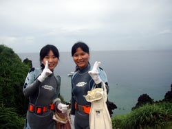 はいさーい!!今日は岩手からお越しのアキちゃん&ゆうくんと一緒に砂辺の海でダイビングと青の洞窟のある真栄田岬でスノーケルをして来ました!!どっちの海もキレイで感動しましたね^▽^♪初めてのダイビングだったゆうと君もめっちゃ上手でビックリしましたぁ〜☆沖縄にまた来た時は今度はケラマでダイビングしましょうねぇ〜^O^/南の島で楽しみにまってまぁーーす。今日1日ありがとうございました♪ |