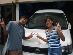 はいは〜い!!ど〜も、りょーけんでっす!午前の部はまだまだ続きますよ〜。今回のゲストはニックさんとチエミーの2名!!ニックさんはライセンスありと言う事でマイ器材持参でやって来ました〜!チエミーも体験ダイビングは2回目と言う事でかなり余裕な表情でしたね〜。水中に入ってすぐはちょっと緊張していた様子のチエミーでしたが、すぐにリラックスして水中の様子を見まわしてました!ニックさんは持ってきたマイカメラで辺りを激写してました!!そんなことをしている間に洞窟に到着!!奥まで行って振り返ると広がる入口の青!とっても綺麗でしたね〜。帰り道ではクマノミを見たりイソギンチャクに触ってみたり、魚に餌付けをしたりして遊びましたね〜。最後にやったバブルリングもキレイに成功してダイビング終了!!ニックさんはまた明日ビーチを楽しんで下さい!!チエミーは次回来た時はライセンス講習で一緒に潜れたらいいですね。待ってますよ〜 |