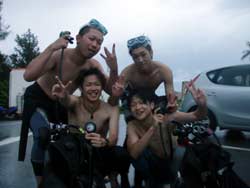 こんにちはーーー!!なすびです!今日はFUNダイビングでーーす♪メンバーは昨日から引き続きの浅井さん・よしくん・レスキューぶりに遊びに来てくれた小野ちん・OWラストのかっちゃーーーん!!大雨の中マエダ岬で2本潜ってきましたーー^−^ハナヒゲウツボの幼魚やハダカハオコゼなど見てきましたーー☆1本目は洞窟であまり人がいなかったので浮上しちゃいましたよ〜!!太陽は出てなかったけど蒼はきれいでしたね★2本目の最後には水中でかっちゃんのOW合格のお祝いをしてきましたーー!!おめでとーー♪3本目はみんなの意見一致でで焼肉食べ放題!!笑。食べ過ぎちゃいましたね〜笑。またみんなで潜って食べてしましょうねーー^−^ |