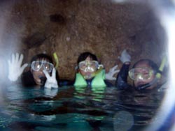 はいさ〜い!!今日は真栄田岬にある青の洞窟スノーケル体験に来てくれたやよいちゃん、なみちゃんと一緒にプカプカワイワイ楽しく泳いできました―!!洞窟の中はちょっと込んでいたけど、青の水面もゆっくり見ることが出来ましたー!!「ニモ」の友達のクマノミにも会えて感動してたね!お魚にエサをあげたり、たっくさーん写真を撮ったりキレイな海を見ながらたくさん泳いだりと楽しかったネ!!今回二人は初の沖縄!!ダイビング出来なかったけど来年は一緒にダイビングしようネ!!お土産たくさん買えたかな?南の島で来年の夏また会える日を楽しみにしてまーす!今日はありがとうございました! |