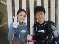 はいはーい!!ども、りょーけんでっす。今日は砂辺でOW講習ですよ〜!今回誕生したダイバーは、リュウジさんとミユキちゃんの2名!!台風が近づいている沖縄ですが、潜ってきましたよ〜。前日のうちに必要なスキルが全部終わっているので最初から遊びまわりましたよ〜!色々と泳ぎ回って1本目終了。2本目は台風がかなり近づいてきたので急いで出発(汗)2本目はOWの最大深度18mまで遊びに行ってきました〜!特に何もしなかったけど2人とも初めての深度にドキドキしていたようです(笑)そして最後に卒業試験でリュウジさんはレギュレータリカバリー!みゆきちゃんはマスククリア全・・・半没!2人ともバッチリ決めてOW合格!!これがダイバーとして第一歩なのでたくさん潜って遊んでくださいね〜!! |
