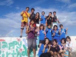 はいさーい!!今日は高知大学ダイビングサークルの最終日です☆最後は、みんなそろってケラマに行ってきました!!メンバーは、れいちゃん&セイラちゃん&しげきよさん&るりこちゃん&さわちゃん&にしまさん&ふじたさん&つじろうくん&マンキー&まりなちゃん&あさこさん&はっとりさん&くりすさん&みきちゃん&まきこちゃん&ゆりちゃん&おおさわさん&にしもりさん&えりちゃんです☆今日もみんなでワイワイがやがやしながら行ってきました☆まず最初は、黒島北のヒージャベイに潜ってきました☆ここでは、浅いところにサンゴがたくさん群生していてスズメダイ系の魚達がとってもキレイでしたね☆ここではキヨチヨ50本ダイブ(本当は昨日でしたが)&ピトゥー100本ダイビングのお祝いをしました!!2人ともおめでとうございまーす!!!そして2本目は、ドラゴンレディーで砂地の中をのんびりと泳ぎましたね☆ここは透明度も良くて、すごい気持ちよかったですね!!みんなで透明のスカシテンジクダイを見たり、なんと飛行機の羽根の残骸まで泳いで見てきましたね☆本当に残骸と言う感じで、少し分かりづらかったですが。。。帰り道は、裸足で泳いで見たり、砂の感触を楽しみました!!お昼休憩は、バク転大会!!上手な人もいたら、前転で変な角度で飛び込んじゃう人まで、最後はやっぱり頭、船にぶつけていましたね(笑)さすがです!!!そして最後は、神山ラビリンスで岩の隙間をクネクネすり抜けながら泳いだり、地形のポイントを満喫しました!!ここでは、たかちゃんの50本ダイブ記念でした!!おめでとうございまーす!!そして最後は、みんなで記念撮影!この二日間の集大成でした〜!!しかしアワがめっちゃ凄かったな〜(笑)高知の海もとっても良いと思うけど、またみんな沖縄の海にも遊びに来て下さいね〜!!南の島で待ってるよ〜☆ |