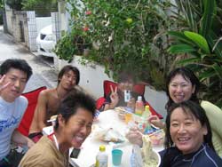 はいさい〜〜今日またまた 立派なダイバーが誕生しました。 名前はやいちゃんです。おめでとう〜〜パフパフパフ〜〜!とっても 上手で水中をスイスイと泳いでいましたね。そして そんなダイバー誕生を 一緒にお祝いしてくれたのは ウチナンチューのしーさーと ダイビング合宿中の西尾です。二人も うまくなりましたね〜サッパの群れを追いかけていましたが今日は 青の洞窟で 神秘的体験をしたあと お花畑で 魚の群れに囲まれニモと一緒に写真を撮ったり なんだか 楽しい1日でした。そして 夜は西尾合宿と就職祝いに 1日プチキャンプです。テントを建てるときにはかなりの雨にやられたけど その後は 快適!からーい タイカレーとやきとり 手羽先を 焼き焼きして 花火をしたり いや〜〜楽しかった!また やろう〜〜なぁ〜〜やいちゃん ダイバー仲間入りおめでとう〜 |