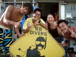 はーい!どーもーワンタンでーす!今日は砂辺で体験ダイビングゥー!一緒に遊んでくれたのは〜松木さん!横田さん!吉田さん!石橋さん!ミツタケさん!矢吹さん!佐藤さんでーす!何回かダイビングをやったことのある人やライセンスを持っている人もいたので、実際に初めてだったのはお一人だけでしたぁ(笑)身体もお仕事の関係上筋肉モリモリ!!練習も最低限だけですんですぐに綺麗な海に潜ることが出来ました!自分ひとりで泳いで見てみたり、クマノミを観察をし、お隣にはニモがいましたね!!下が着底出来る場所では水中ピラミッドを作って遊び(笑)次はソフトコーラルだっと思ったら・・イワシの群れが大量に!!!何匹いたんでしょうか!すごかったなぁ!そして最後は魚にエサをあげてみんなで記念撮影!!七人で無事に潜れてよかったね!また来年も遊びにきてねー!! |