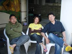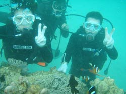 はいはーい!ども、ミキプルーンもといいりょーけんでっす。今日は体験ダイビングに行ってきました!今回のゲストは約1年前に潜りに着てくれたかわちゃん&ゴリ!!前回と同じメンバーでゴリチョの海で遊んできました〜。前回は潜り始めたときにちょっと苦しくなっていたかわちゃんでしたが、今回は何の問題も無く2人とも余裕の表情で初めから一人で泳ぎまわれましたね!アレな形の岩で写真を撮ってみたり、今回もクマノミとの撮影や、ヒトデを持ってポーズしながらなど色々な写真を撮りましたね。そして餌づけのときは今回もトモさんに餌づけを・・・(笑)色々と今回も遊びまわってきました。ちょっと残念だったのは前回の予告どおりお花畑にいけなかったことかな?次こそは砂辺の海でのダイビングをやりましょうね!それともライセンス講習かな?また沖縄の海で会いましょう!! |