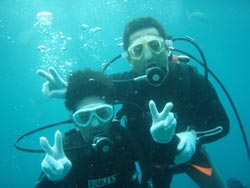 ども!タクです。本日は、ゴリチョにて体験ダイビングです!!ゴリチョへ向かう途中に見える、母校を眺めると、ウルウルしてしまいますが、盛り上げていきましょう!!!今回、遊びにきてくれたのは、家族旅行中の荻原さん御一家。ゆっくりと、のんびりと説明して・・・海へ!!足の着く所での練習では、子供達は余裕のウハウハ(笑)すぐに慣れていきました〜。同じくお父さんも、少年のように泳いでました!!お母さんのほうは、ちょっと緊張していて、今回は残念ながら皆と潜れなかったですが、また次回リベンジしてくださいね^0^ |
